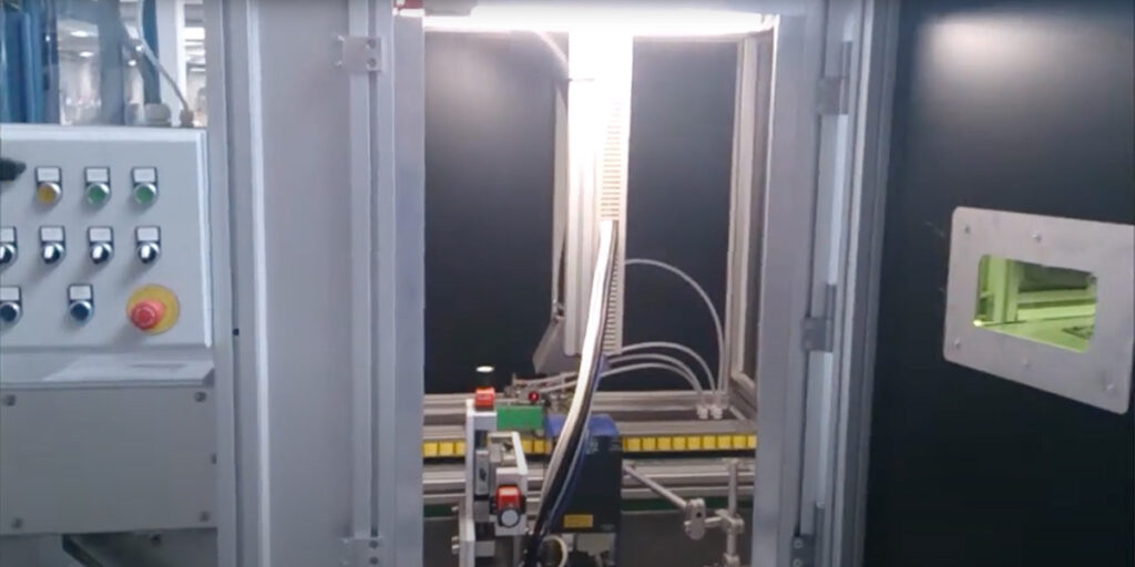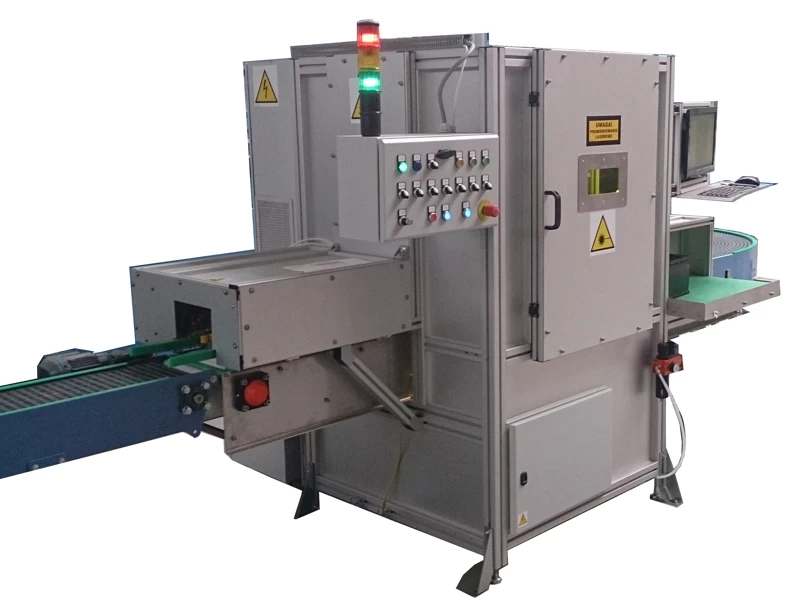 Automatyczne stanowisko do znakowania laserowego akumulatorów to innowacyjne rozwiązanie zapewniające bezpieczeństwo i efektywność na liniach produkcyjnych. Urządzenie zostało zaprojektowane i wykonane zgodnie z najnowszą dyrektywą CE – EN 60825-4 z 2011 roku dotyczącą bezpieczeństwa urządzeń laserowych i osłon laserowych. Automatyczne drzwi zamontowane na przenośniku pozostają zamknięte podczas całego procesu znakowania, eliminując ryzyko wypadków i zapewniając pełną ochronę operatorów.